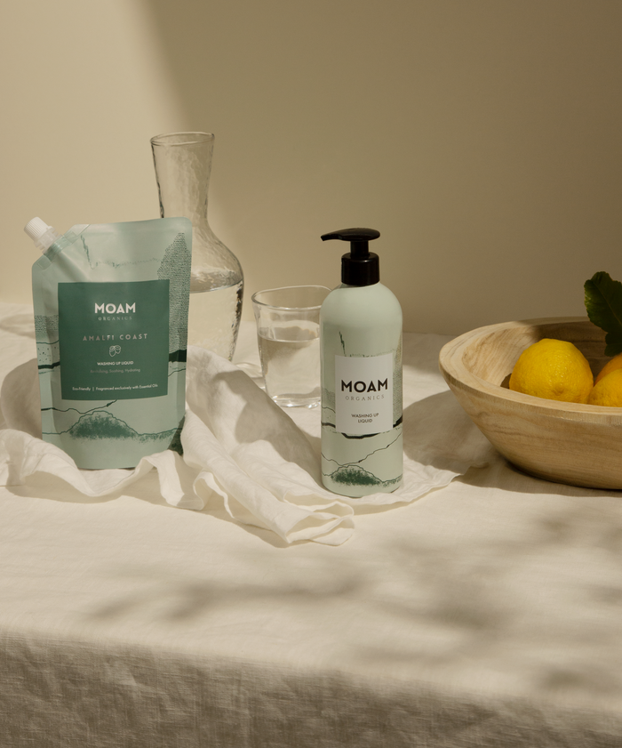 Moam Organics create refillable and eco-friendly cleaning, laundry and skin care products with essential oils.