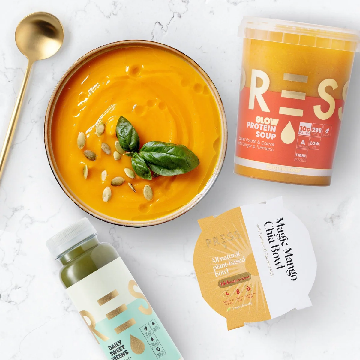 PRESS delivers 100% plant-based, nutritionist-designed juices, meals, and cleanses that support sustainable weight loss, gut health, and energy—made in the UK with certified ingredients and fully recyclable packaging.