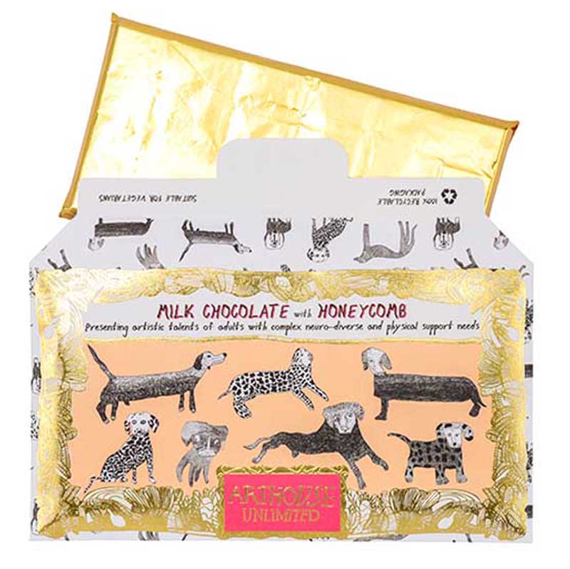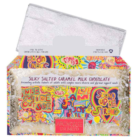 Arthouse Unlimited offers ethically produced chocolate with designs by artists with disabilities, supporting inclusivity and creativity.