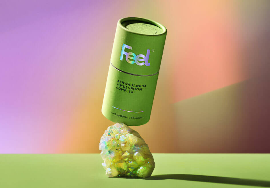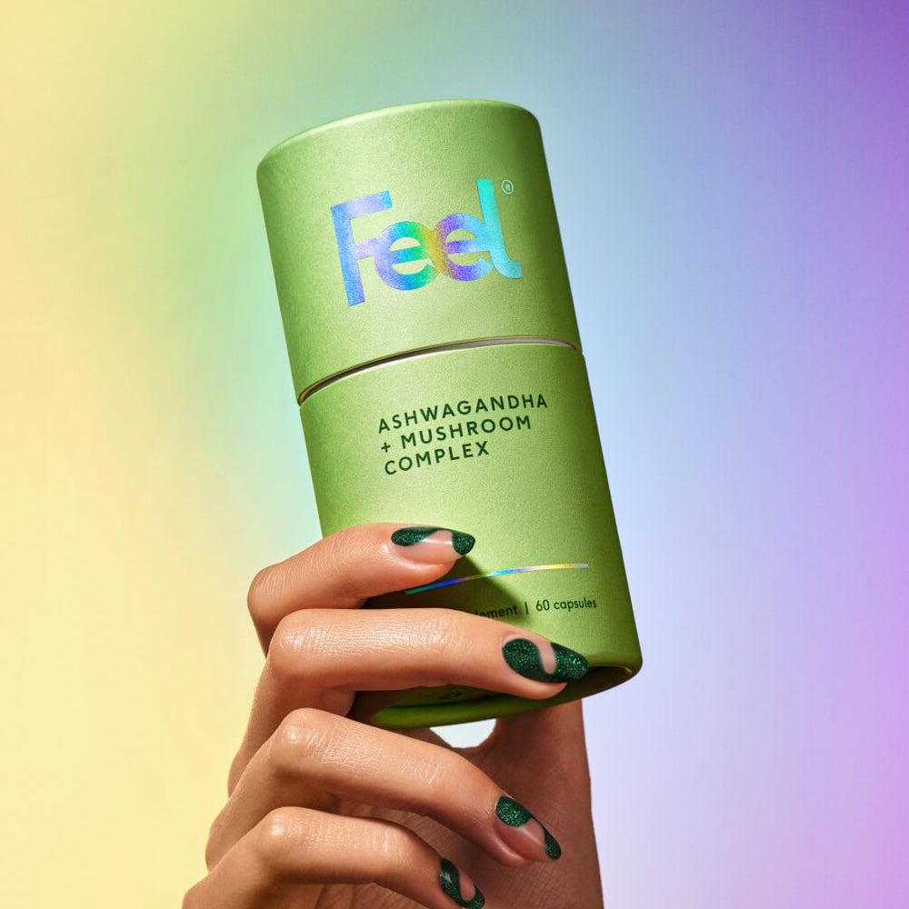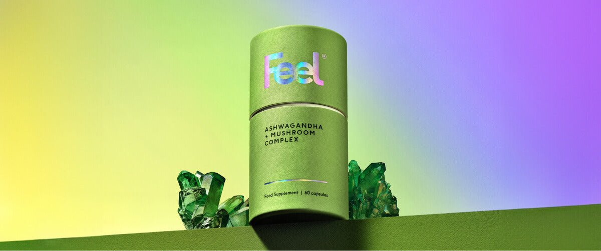 Discover the synergistic power of Feel's Ashwagandha + Mushroom Complex, designed to support your mental well-being.
