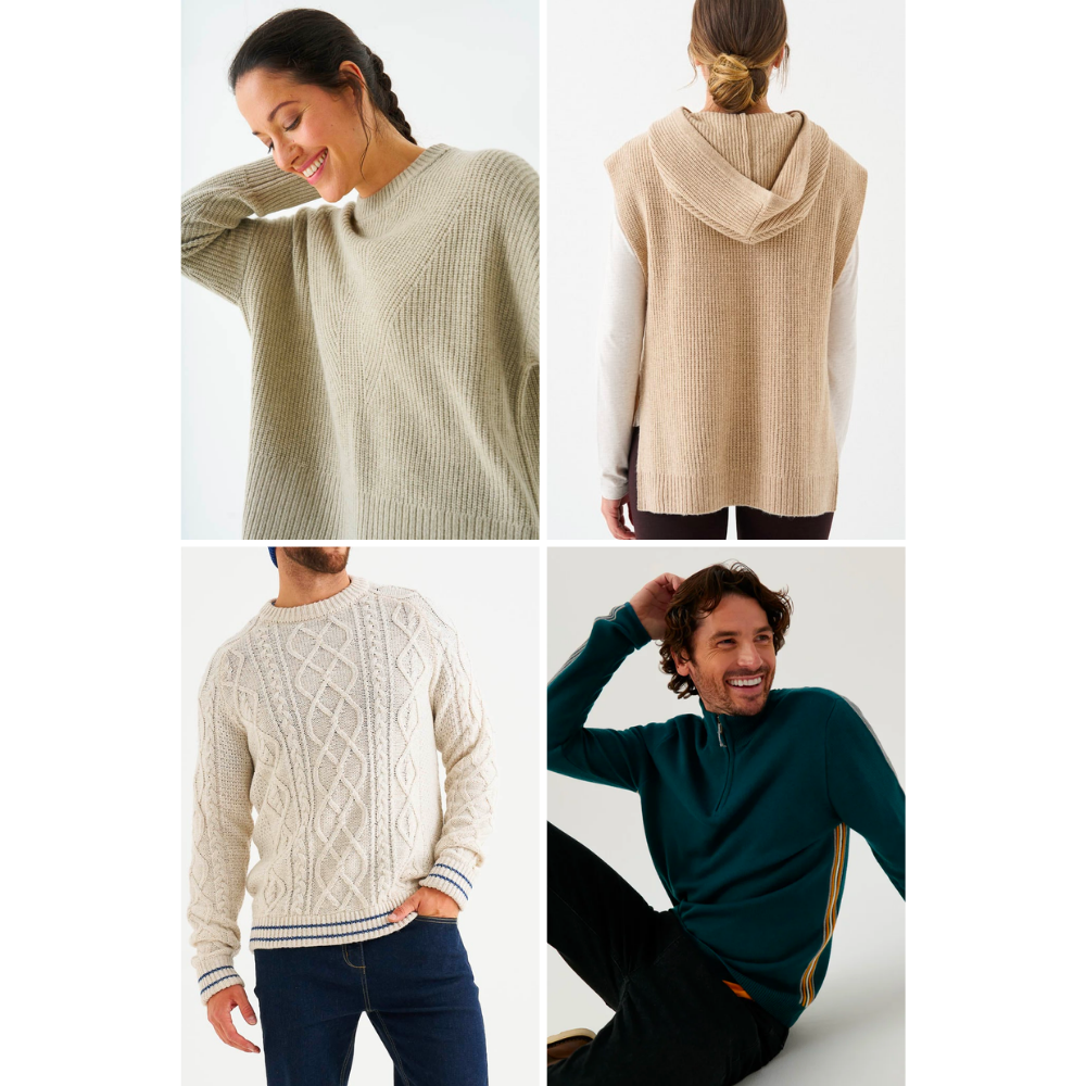 Luxuriously soft and sustainable bamboo jumpers and natural merino wool knitwear available in a range of styles and colours.