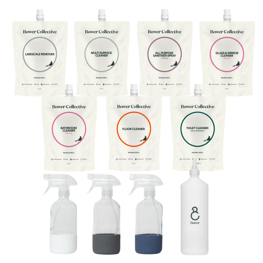 Household cleaning refill pouches offering an eco-friendly and convenient solution for your entire home.
