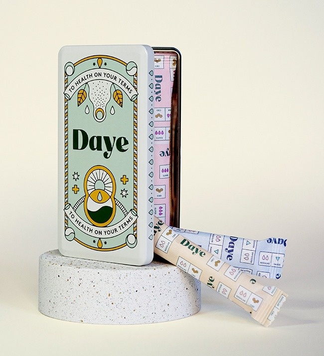 Daye tampons are sustainable and organic with an optional CBD coating, and zero waste flushable wrappers.