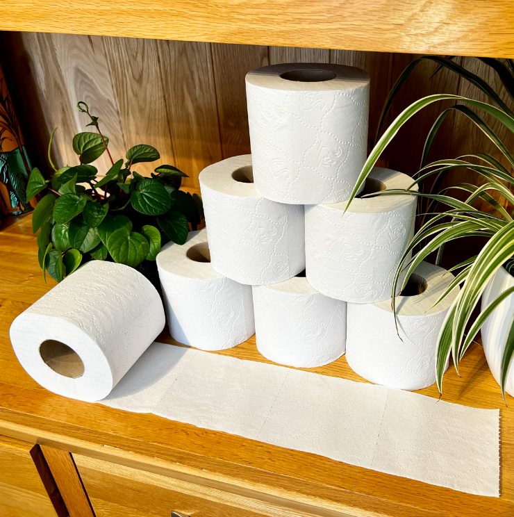 Carbon negative recycled toilet paper made in the UK, offsetting 200% of emissions plus tree planting.