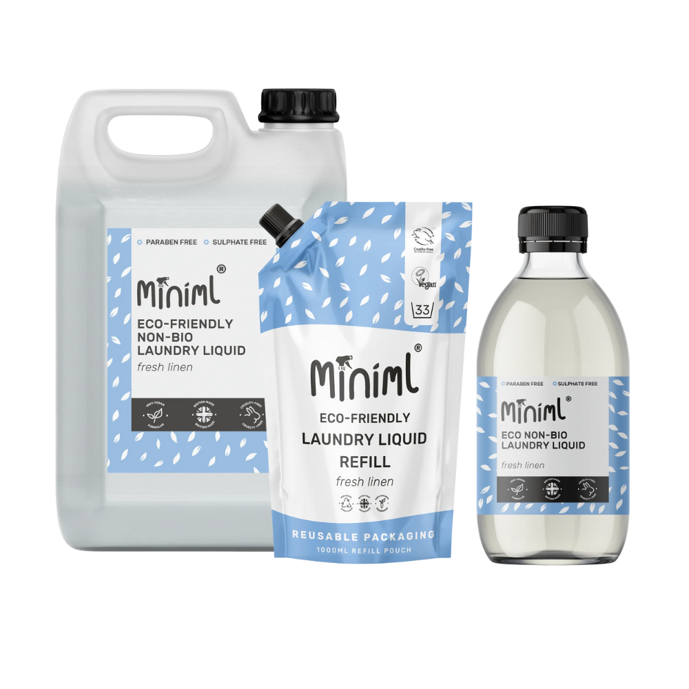 Non-bio, refillable laundry liquid made in the UK with naturally derived ingredients—vegan, cruelty-free and zero waste.