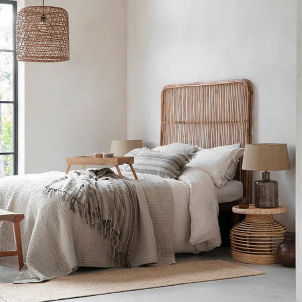 Eco-friendly, handmade and natural rattan headboard for king or super king divan beds.