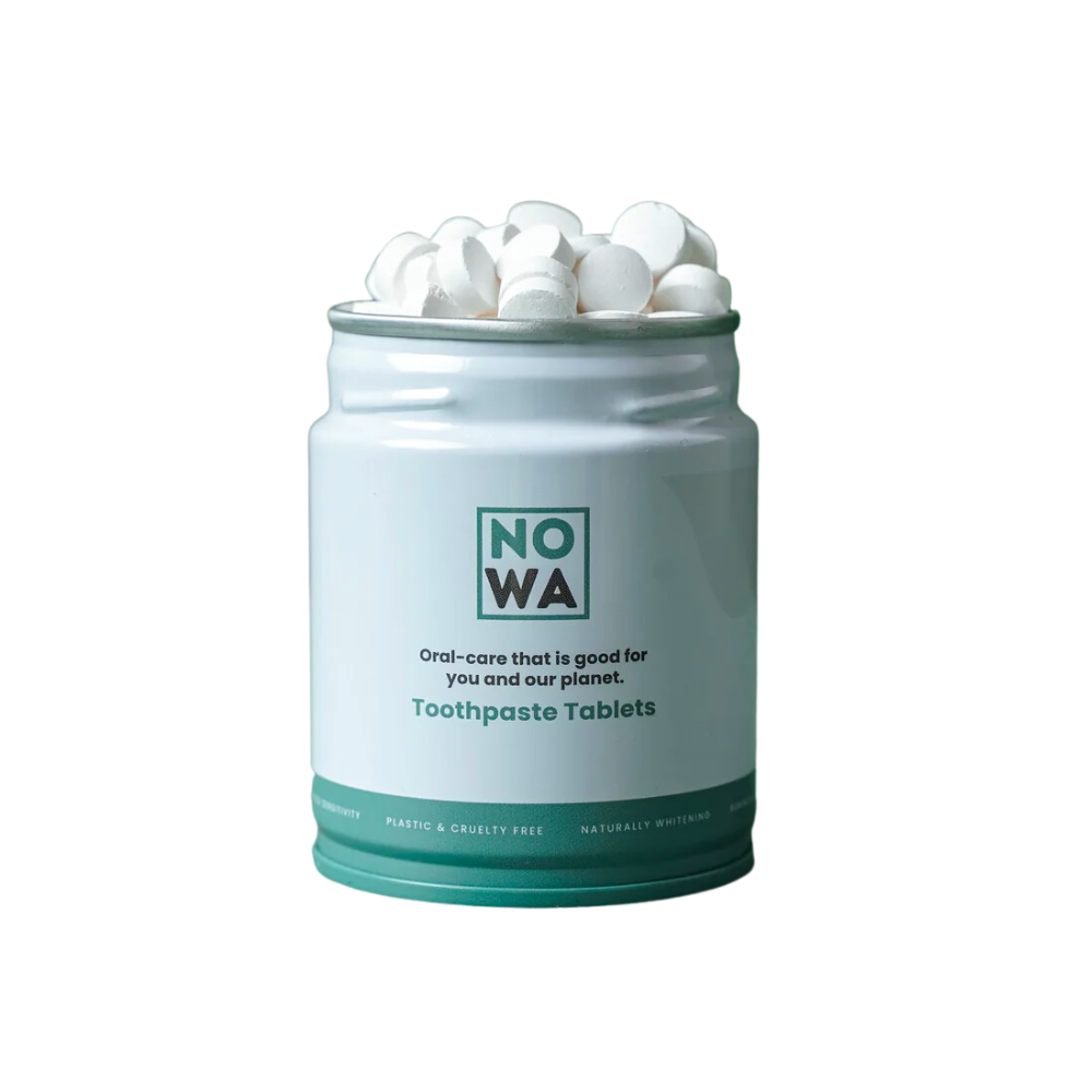 Zero waste fluoride toothpaste tablets with Hydroxyapatite in home compostable packaging and refillable tin.