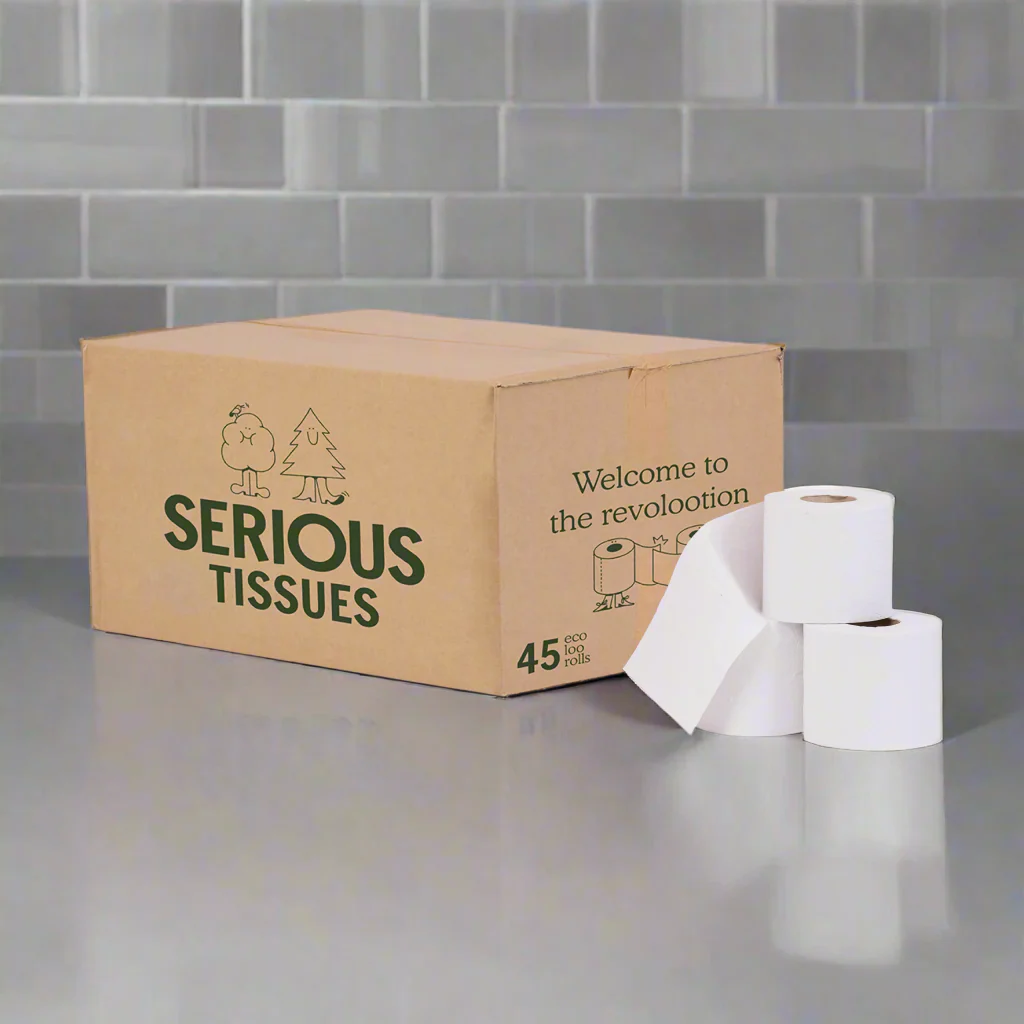 Eco‑friendly, UK‑made recycled toilet roll — vegan, unbleached with plastic‑free packaging.
