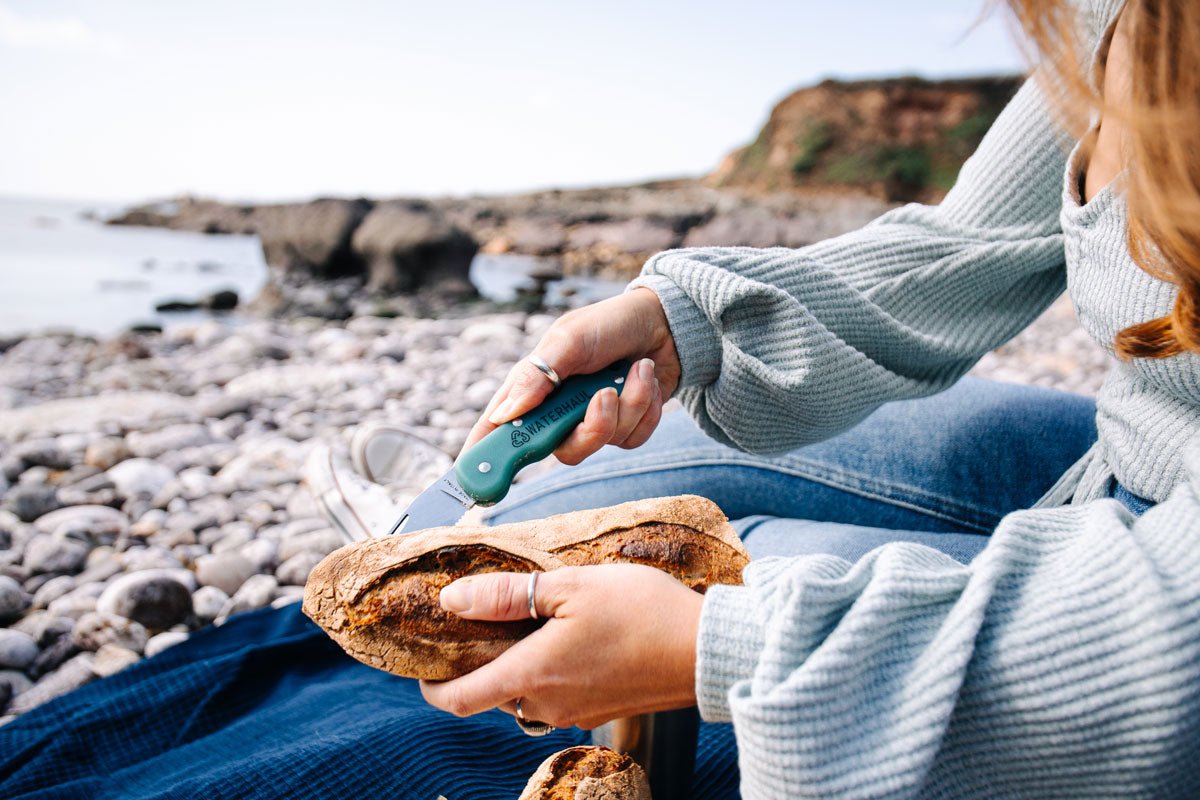 Multi-purpose adventure pocket knife made from 100% recycled gill nets and high-end Italian blade.